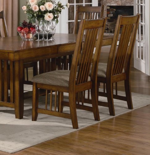 Set of 2 Dining Chairs Mission Style Warm Medium Oak Finish Review