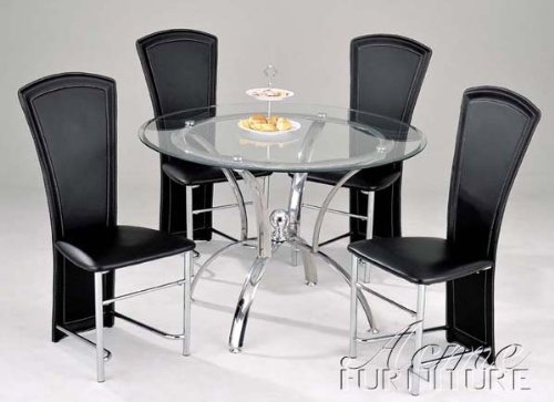 - Set includes one table 53.5-inches round and four dining chairs with 18-inch seat height