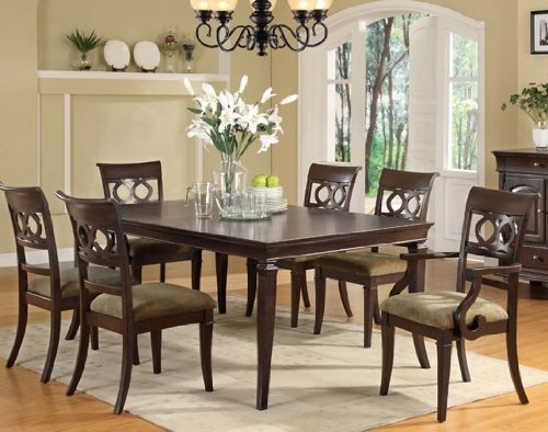 7pc Dining Set with Interlocking Circle Chair Back in Brown Finish Review