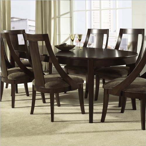 Elegant and functional are ideal terms for the contemporary styling of the Somerton Cirque Dining Table. With a beautiful merlot medium gloss finish the curves of its oval top give a smooth high class appeal. The Somerton Cirque Dining Table even comes with an extending leaf to extra space for more seats and thus more merriment amongst you and more guests! Gorgeous contemporary style and iconic design imbue the Somerton Cirque Collection for the perfect appealing dining experience. Made of hardwood rubber wood solids and Primavera veneers these pieces were built to last and for everyday use. Curving lines matched with straight cuts give this collection and individual flair while the dark rich stain gives a stately presence to make your dining room the pinnacle for great entertainment. Features: Merlot finish Leg BaseWood TopContemporary curved leg design Smooth oval shape table top Includes extension leaf Seats 8Constructed of Rubber Wood and Primavera Veneers for durability Some Assembly Requiredlt;.LIgt; Specifications: Regular Dimensions: 308221; H x 648221; W x 448221; D With Leaf Dimensions: 308221; H x 828221; W x 448221; D Weight: 135 lbsCLICK HERE for a virtual tour of this collection!